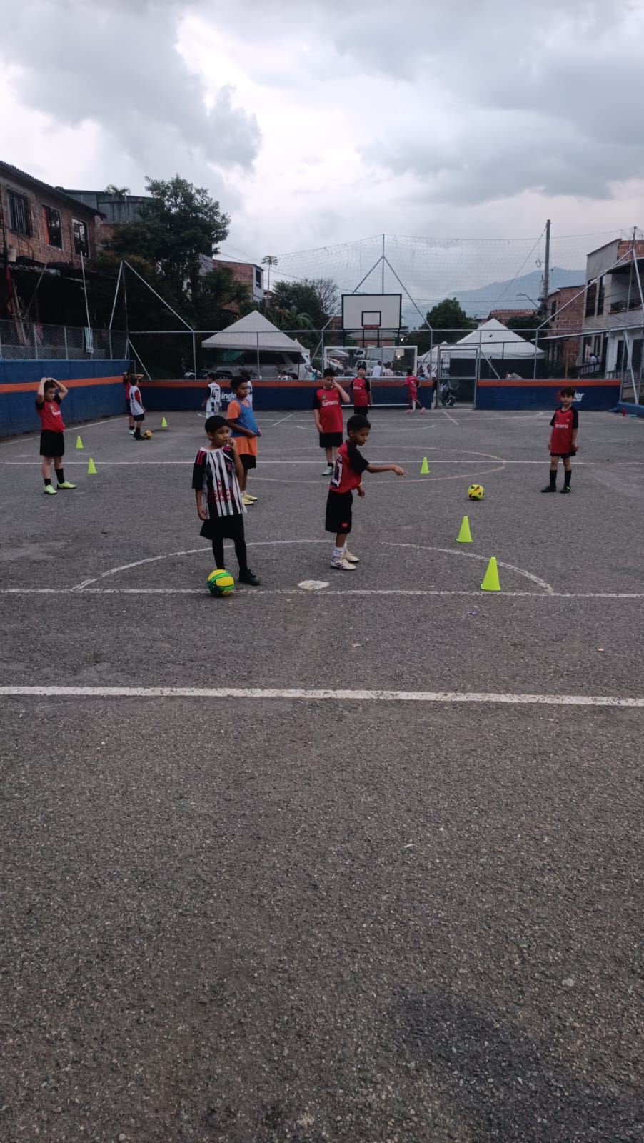 Trabajamos en un entorno influenciado por bandas criminales, drogadicción y violencia, factores que amenazan a nuestra niñez y juventud. Estamos ubicados en la zona urbana de Bello, Antioquia (barrio Villa Linda Girasoles), una comunidad de estrato 1-2 donde conviven familias colombianas y venezolanas. El territorio enfrenta hogares disfuncionales, abandono estatal y múltiples necesidades básicas insatisfechas. Nuestro enfoque deportivo es principalmente formativo, sin renunciar a competir con alto nivel.