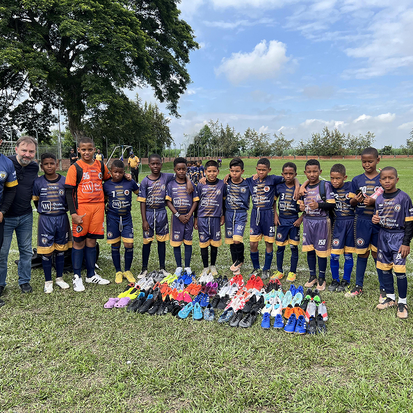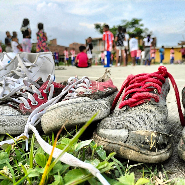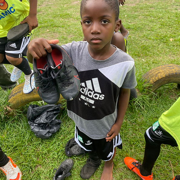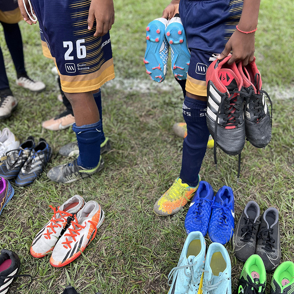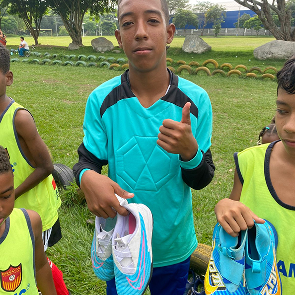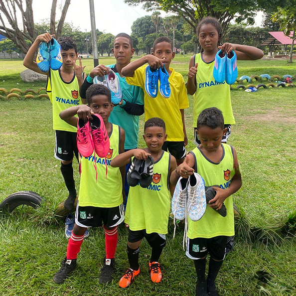 Nuestro programa “Devuélvelos al juego” nació de una necesidad real y urgente: brindar calzado adecuado a niños y niñas que sueñan con jugar al fútbol pero no cuentan con los recursos para obtener el equipo básico.