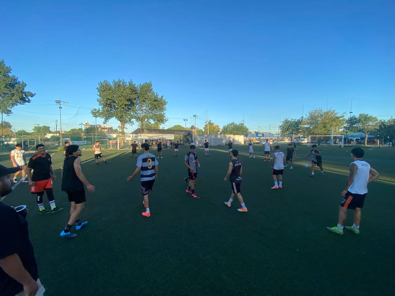 Men's football: +35 on Mondays at 19:00, First Team on Wednesdays and Fridays from 18:30 to 20:00, U-18 and U-16 on Wednesdays and Fridays from 16:00 to 17:30, U-14 and youth divisions on Wednesdays and Fridays from 17:30 to 19:00. Women's football: youth teams on Tuesdays and Thursdays from 16:00 to 17:30, First Team on Tuesdays and Thursdays from 17:00 to 19:00. Training takes place at Complejo Saturno, Eva Peron 2650, Temperley.